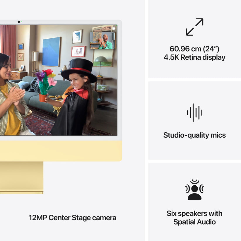 iMac. The ultimate all-in-one desktop. Built for Apple Intelligence. Supercharged by the M4 chip, browsing and multitasking across apps feels snappier. With a stunning 60.96 cm (24?) 4.5K Retina displaying an iconic design, and advanced camera, mics and speakers. iMac is brilliant for work and play.