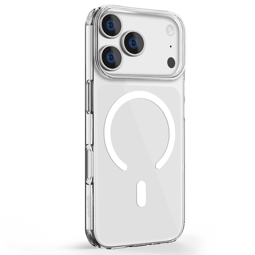 GRIPP Clear Mag-Safe Case for iPhone 17 Pro is one of the top-selling iPhone cases in the market, known for its exceptional durability and sleek design. This case is rigorously tested to withstand drops up to 8 feet with D30 shock-absorbing technology, ensuring the phone remains protected in various situations. Made from high-quality flexible TPU and Hard PC materials, it offers excellent resistance to yellowing, maintaining its crystal-clear transparency over time. The case maintains a sleek design with precise cutouts and responsive buttons for easy access and operation. Comes with Mag-Safe technology with a powerful N52 magnet providing strong magnetic support for Mag-Safe accessories and wireless charging. Raised edges around the screen and camera offer added protection against scratches and impacts. Equipped with Air Cushion Technology in all corners for superior impact absorption. Combines better quality and compact construction for a stylish, lightweight, and elegant look. This case safeguards your phone's back and frame from everyday wear and tear, including bumps, scratches, dust, and abrasions.