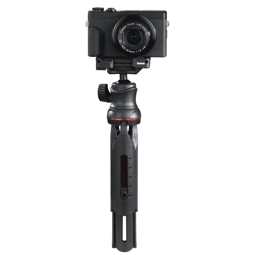 Kit comprising table tripod and Bluetooth remote trigger for flexible and varied smartphone photography from original angles and in unusual locations Stable and robust workmanship with high-quality materials and screwed-in rather than bonded components to guarantee a tripod with a long service life The ball head allows perfect alignment for shots in portrait and landscape format Its compact size makes it ideal for travelling, holidays, hikes and outdoor trips 2in1 system for smartphones, universal 1/4 thread Desktop Tripod: Tripod legs can be pulled out in 4 stages: adjustable via moving engagement mechanism at the press of a button on the inside of the tripod legs Tripod legs can be adjusted individually in order to adapt the tripod perfectly to different surfaces and images For a smartphone width from 5.9 9.0 cm (in horizontal format) thanks to the extendable clamp spring holder Double-folding smartphone holder for space-saving and secure transport that protects mechanical parts Rubber finish on the handle and thread protects against scratches Cold shoe for attaching LED lights and microphones, for example Rubber feet for firm grip on smooth, slippery and uneven surfaces With aluminium inserts and Nylon-reinforced plastic for additional stabilisation Can be used completely folded up as a selfie monopod Bluetooth release: For smartphone cameras, ideal for selfies and unusual angles Connection via Bluetooth directly with the smartphone Better focusing, faster snapshots, resulting in better pictures and sharp, un-blurred selfies If the smartphone is positioned in a suitable spot, both arms can remain free Hand strap Perfect for party and group shots, range of up to 10 m captures a much wider image field Independent of self-trigger mode Small and compact, for storing in the holder's cold shoe Can be switched off, preventing accidental triggering while being transported Removable.
