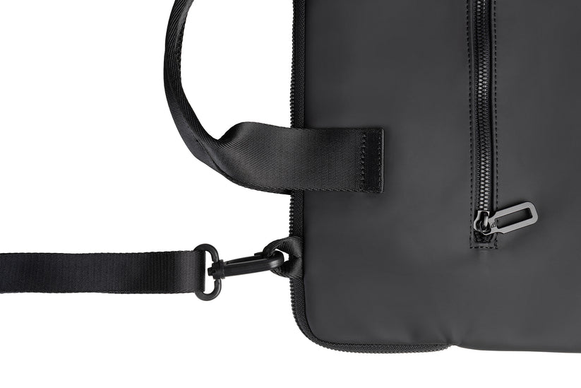 Minimal-sports design bag for 15.6" laptops and 16" MacBooks, made of rubberized material. Equipped with a large unique compartment with an internal laptop pocket and an external accessory pocket.