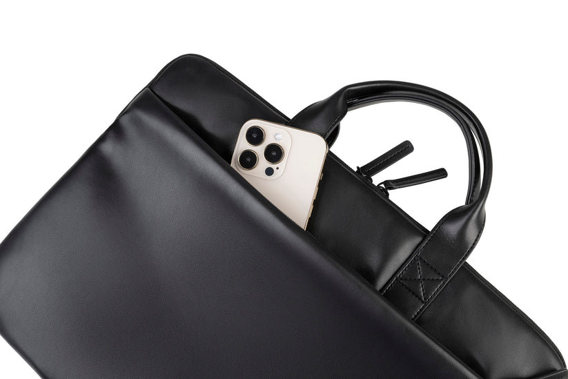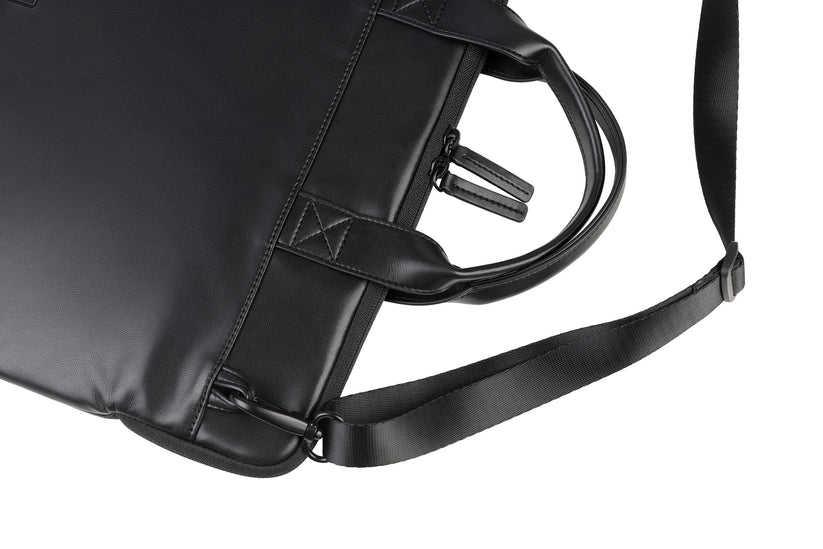 Stylish Slim Bag in soft synthetic leather.Single internal compartment for Laptop & external pocket for accessories.Anti-slip system to secure your device, comes with contarting inner lining & removable shoulder strap