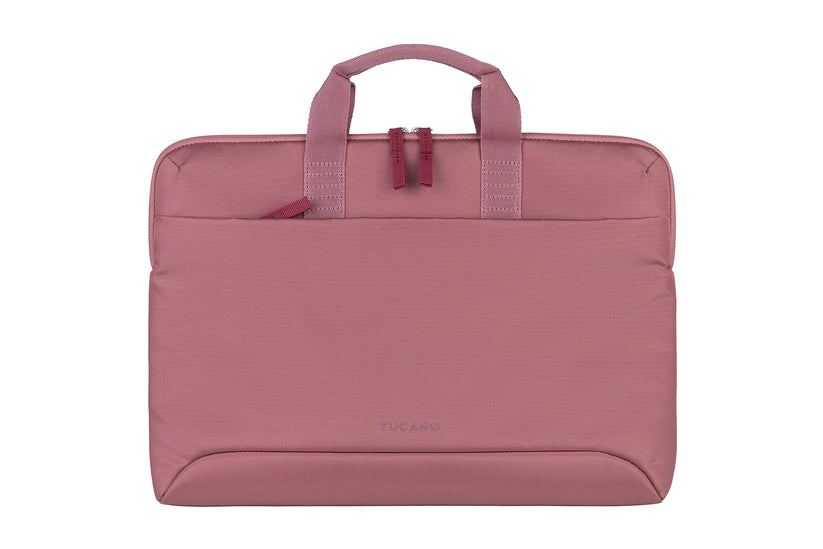 Super-slim bag for laptops up to 15.6" made of high-tech material with contrast-color details. Double handles and detachable shoulder strap made with webbing
