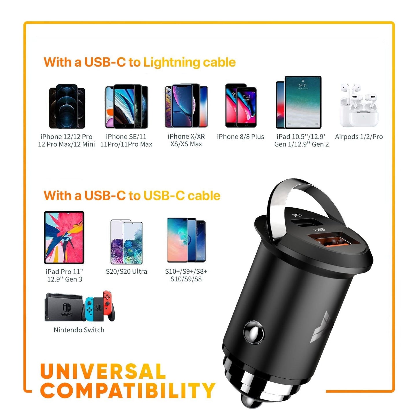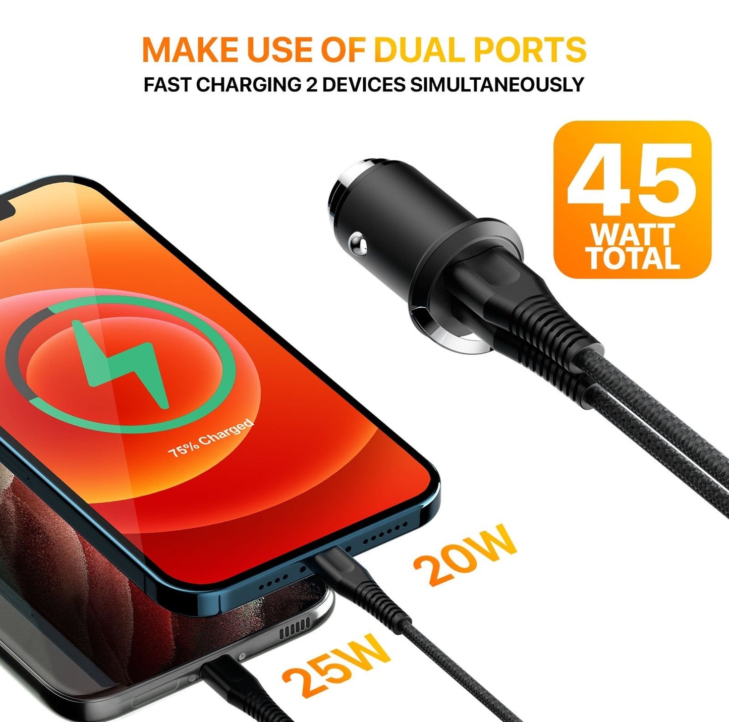 Vaku Luxos® 45W Fast Car Charger PD+QC Charger - Grey(8905129009335)