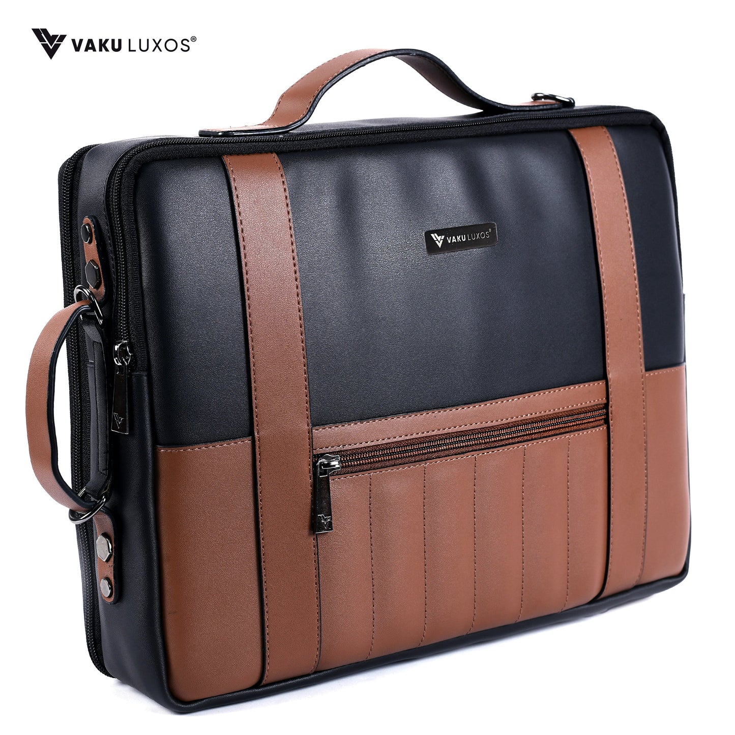 Vaku Luxos® BARCELONA Premium Collection Sleeve for Macbook 13"|14" with Strap highly durable - Black/Camel(8905129016791)