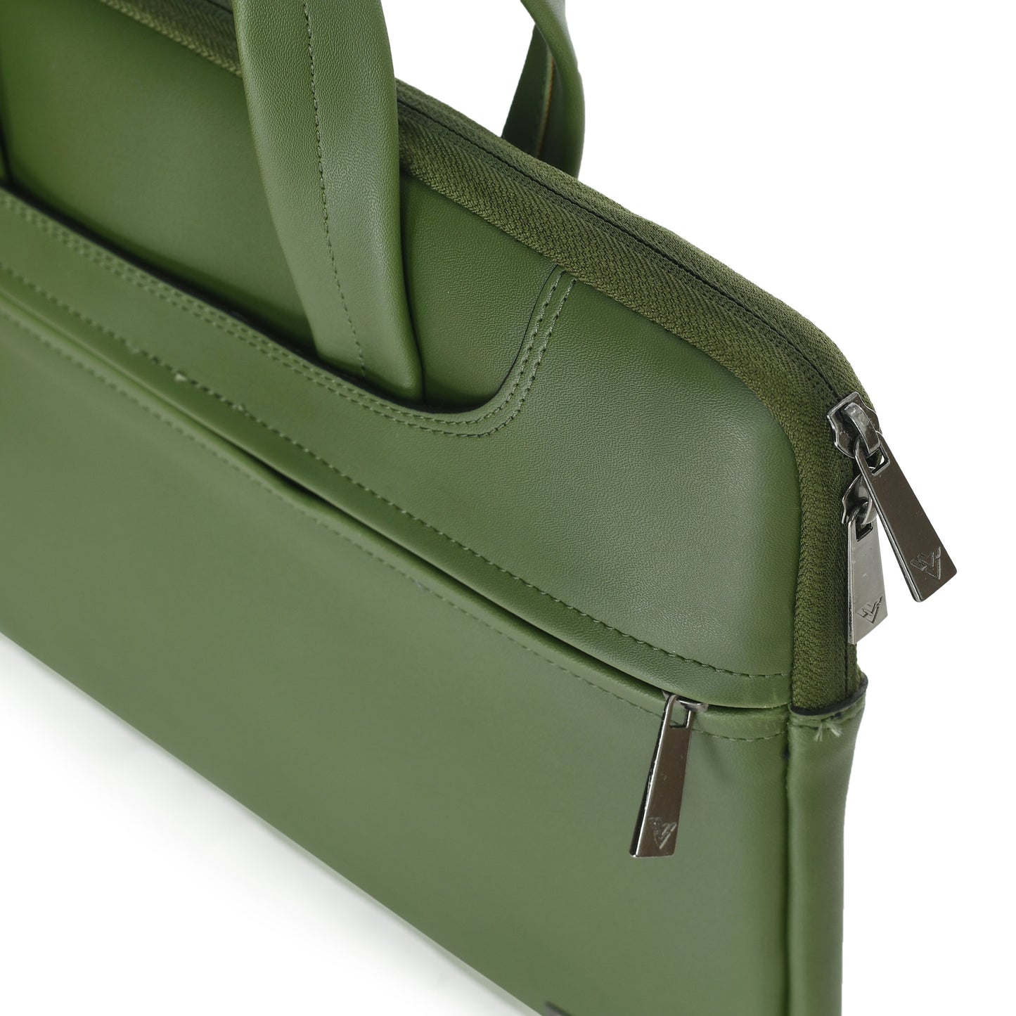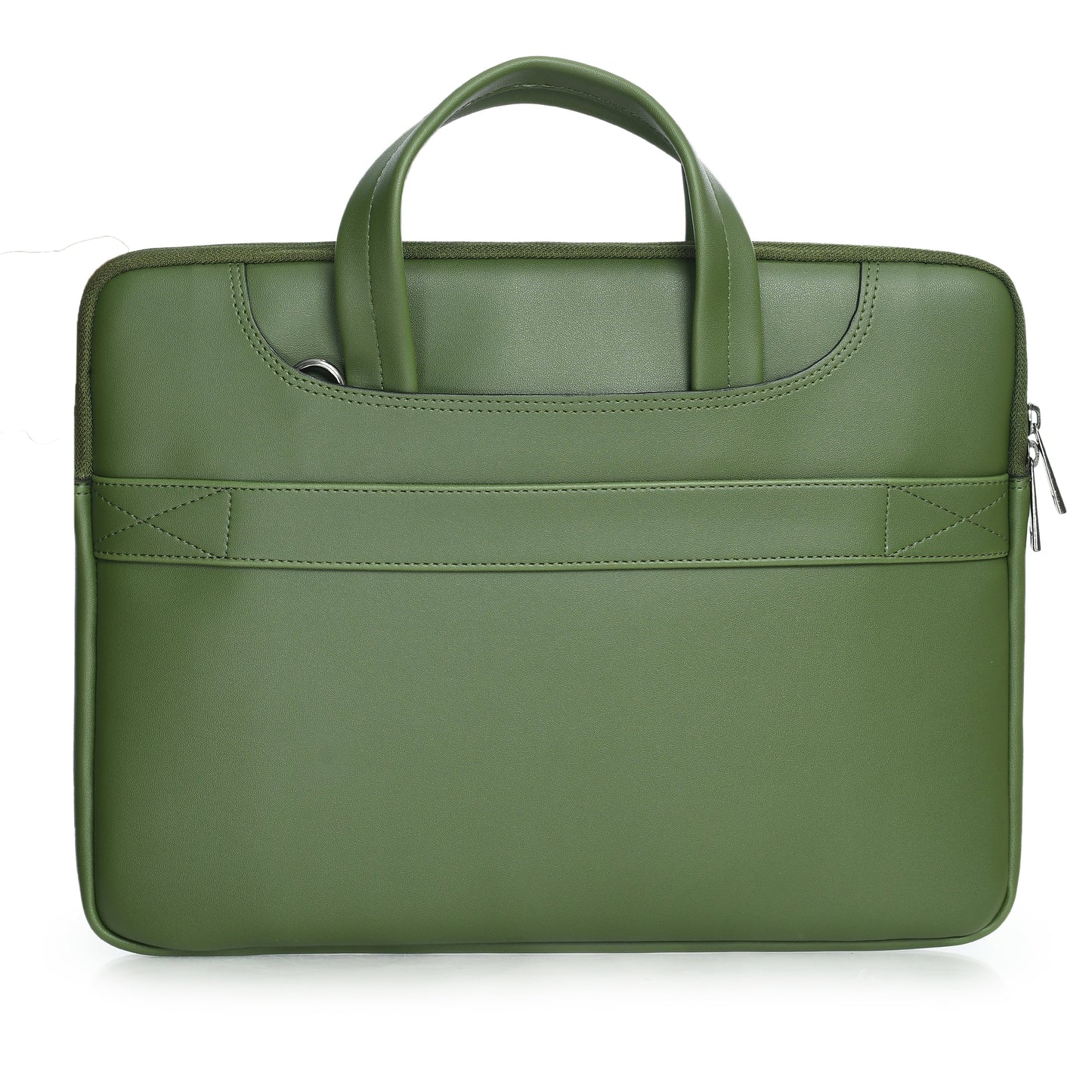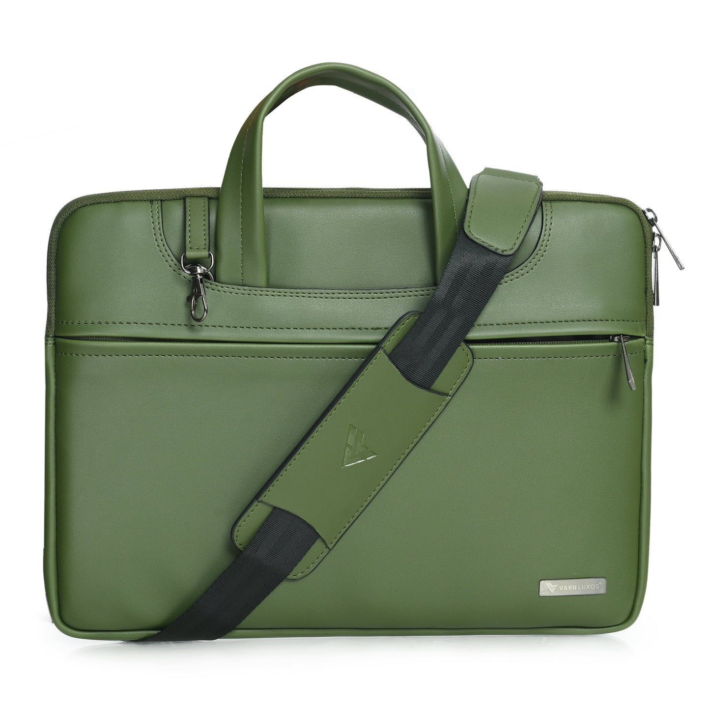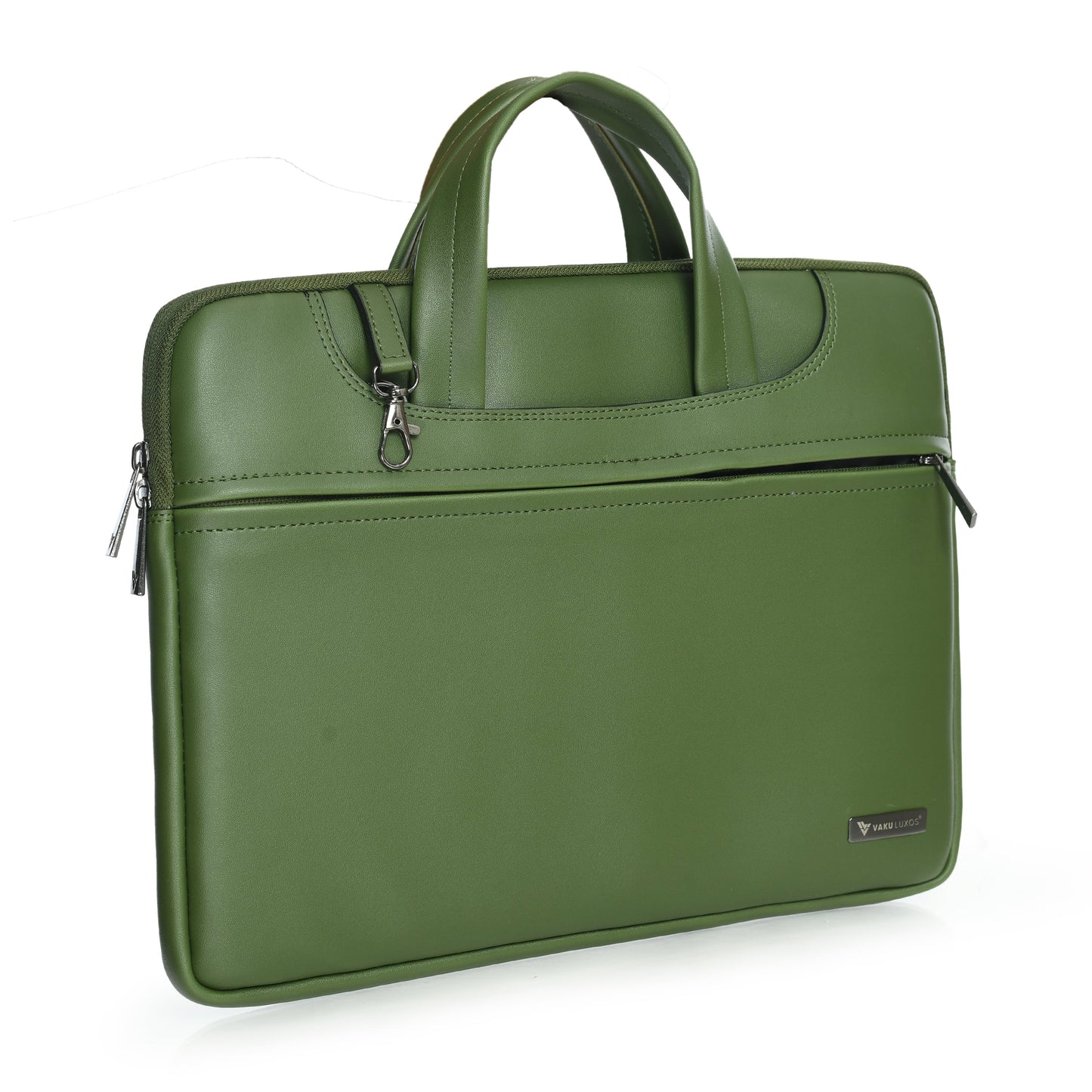 Vaku Luxos® DA ITALIANO Refined Leather Sleeve with Free Pouch & Strap highly durable Compatilbe for Macbook 14" - Green(8905129015244)