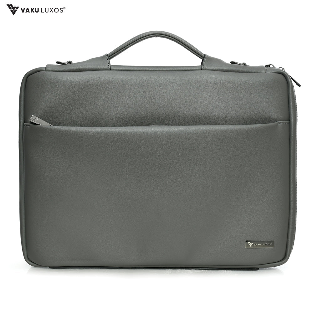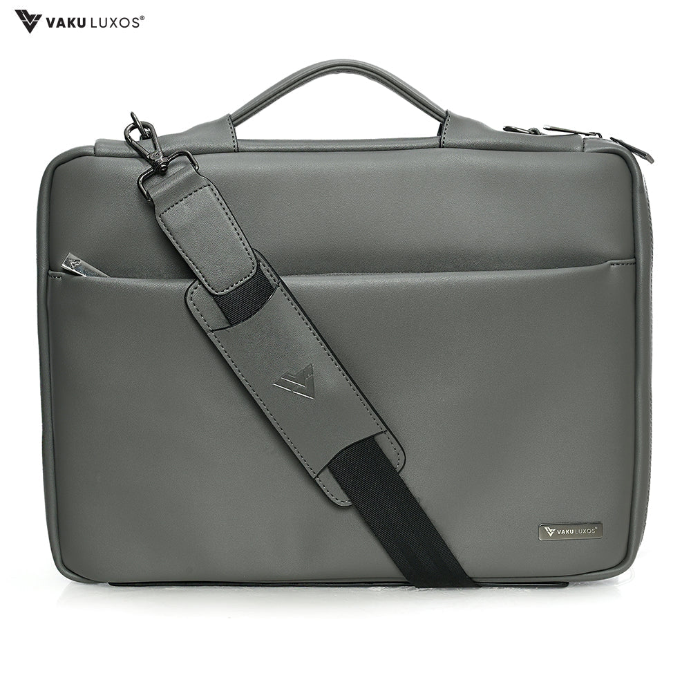 Vaku Luxos® DA VALENCIA Refined Leather Sleeve with Strap highly durable Compatilbe for Macbook 13"|16" - Grey(8905129014506)
