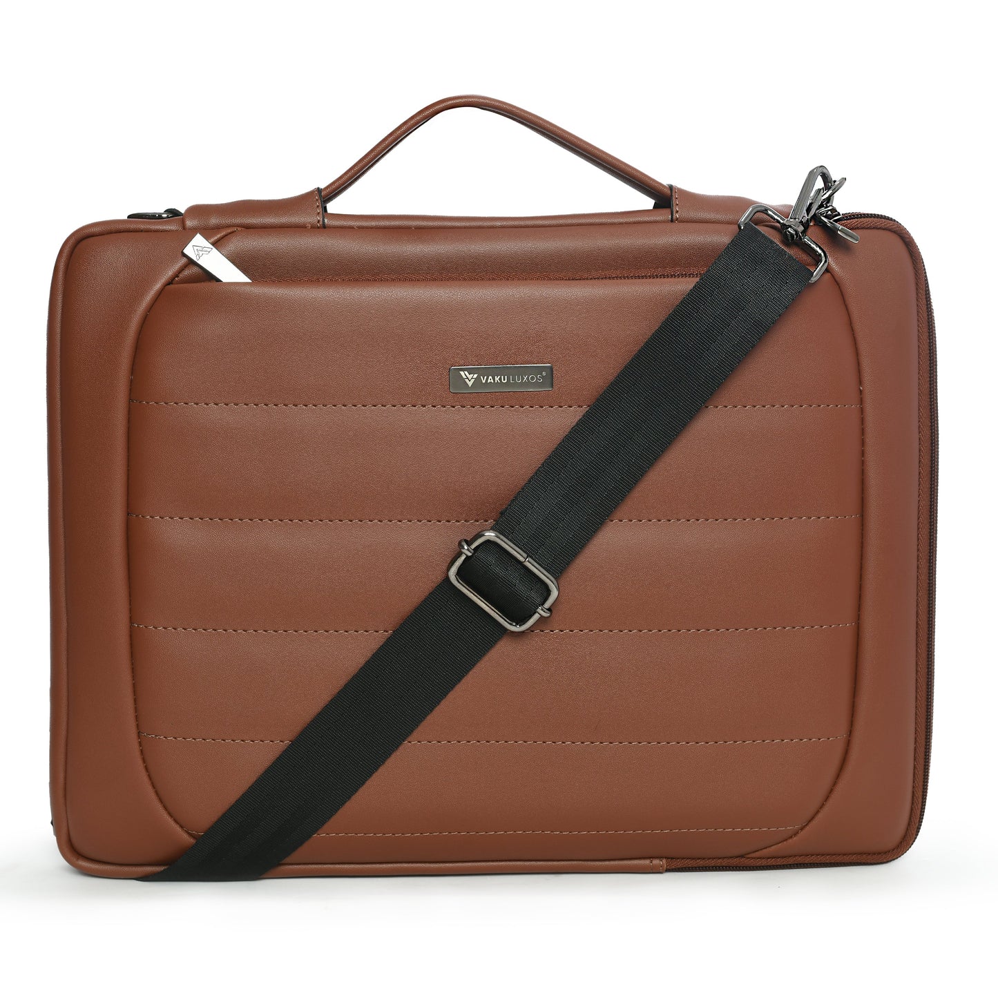 Vaku Luxos® Lasa Chivelle Premium Collection Sleeve for Macbook 13"|14" with Strap highly durable - Tan Brown(8905129019402)
