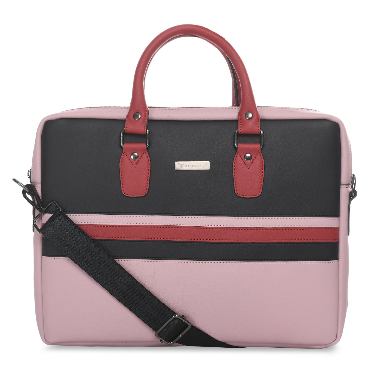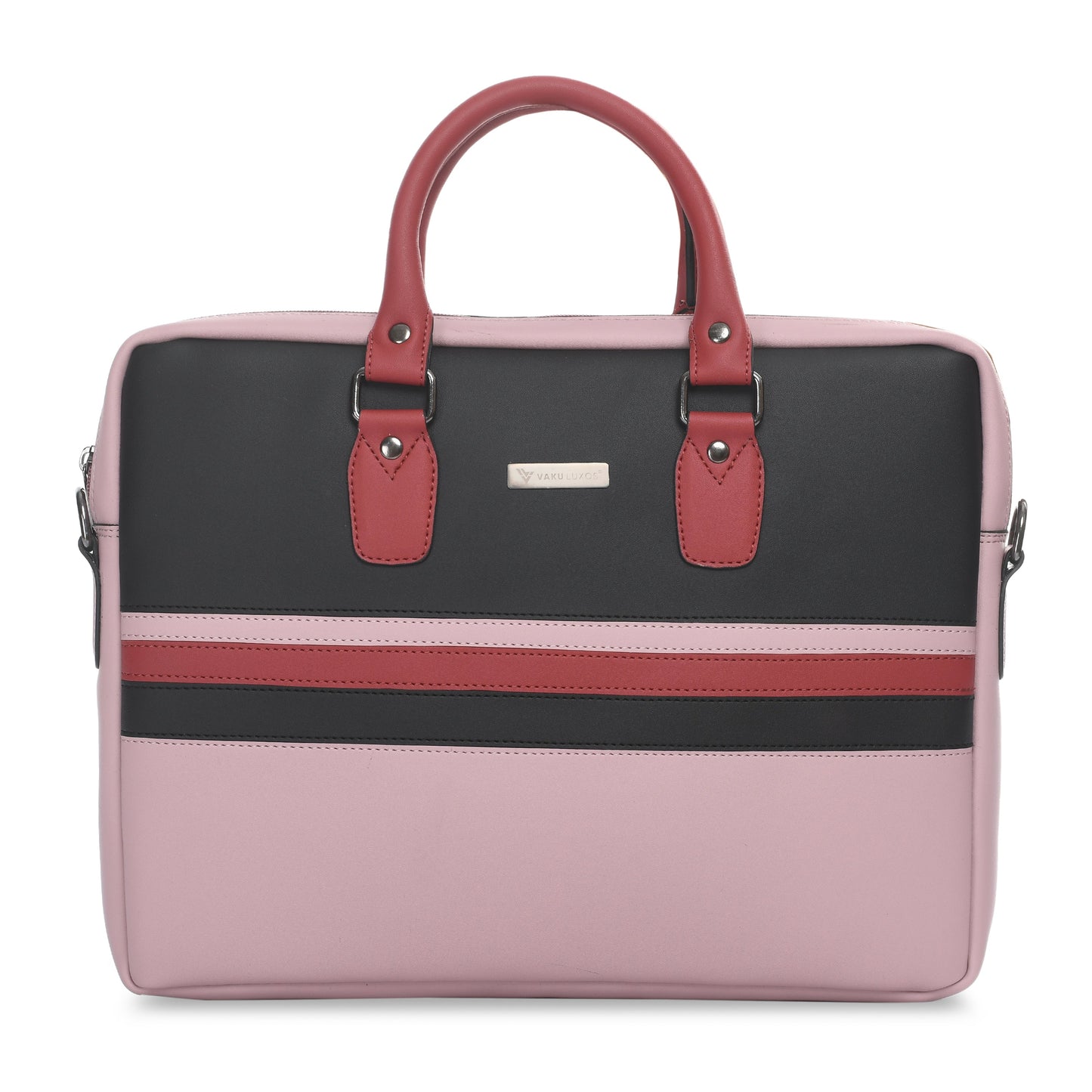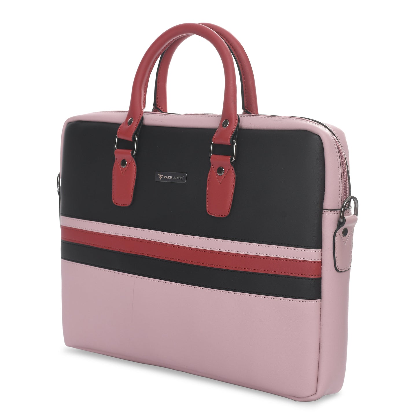 Vaku Luxos® MILAN Stripey Macbook Sleeve with Strap highly durable Compatilbe for 13|14 Inch - Blk+Pink/Black(8905129025489)