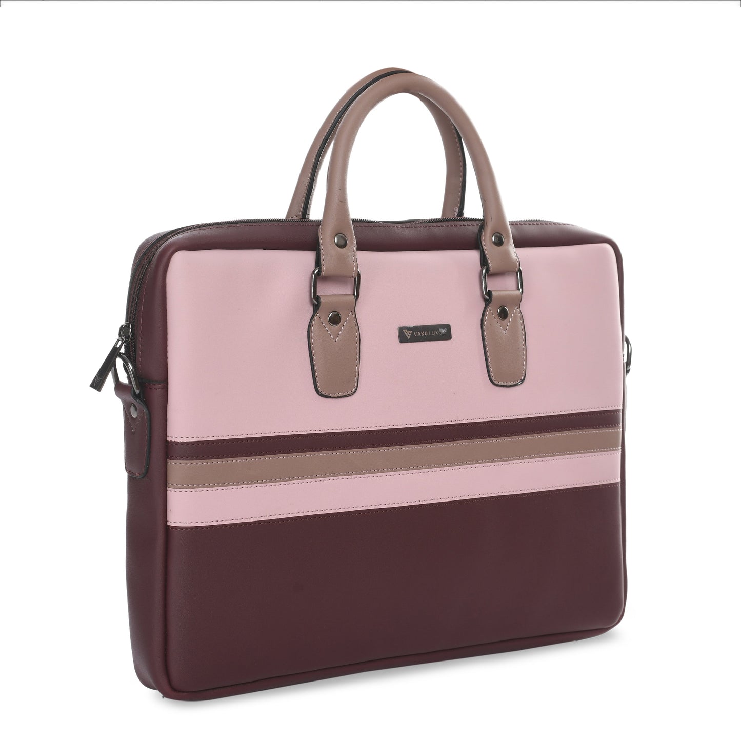 Vaku Luxos® MILAN Stripey Macbook Sleeve with Strap highly durable Compatilbe for 13|14 Inch - Pink/Cherry(8905129025564)