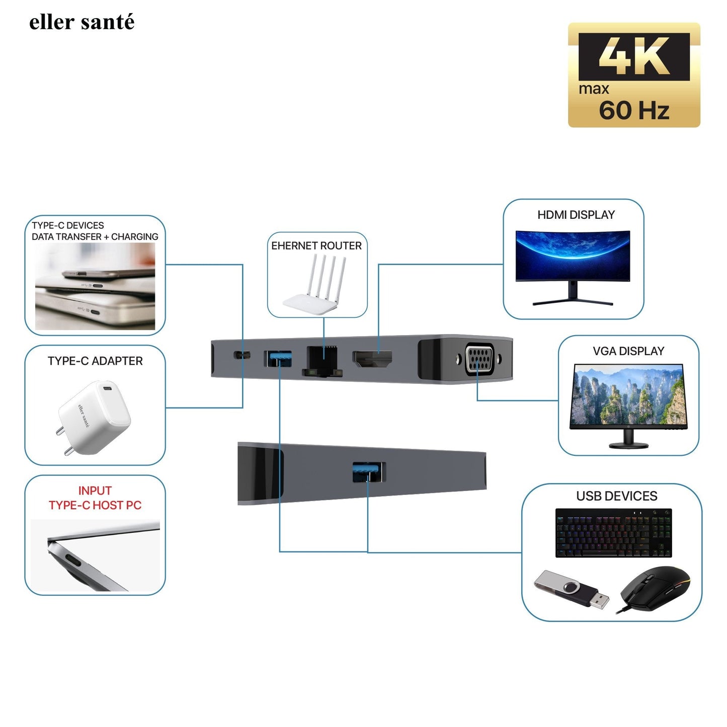 Vaku Luxos® Ultron Rage 6IN1 USB-C VGA + Ethernet + HDMI 4K Docking St
